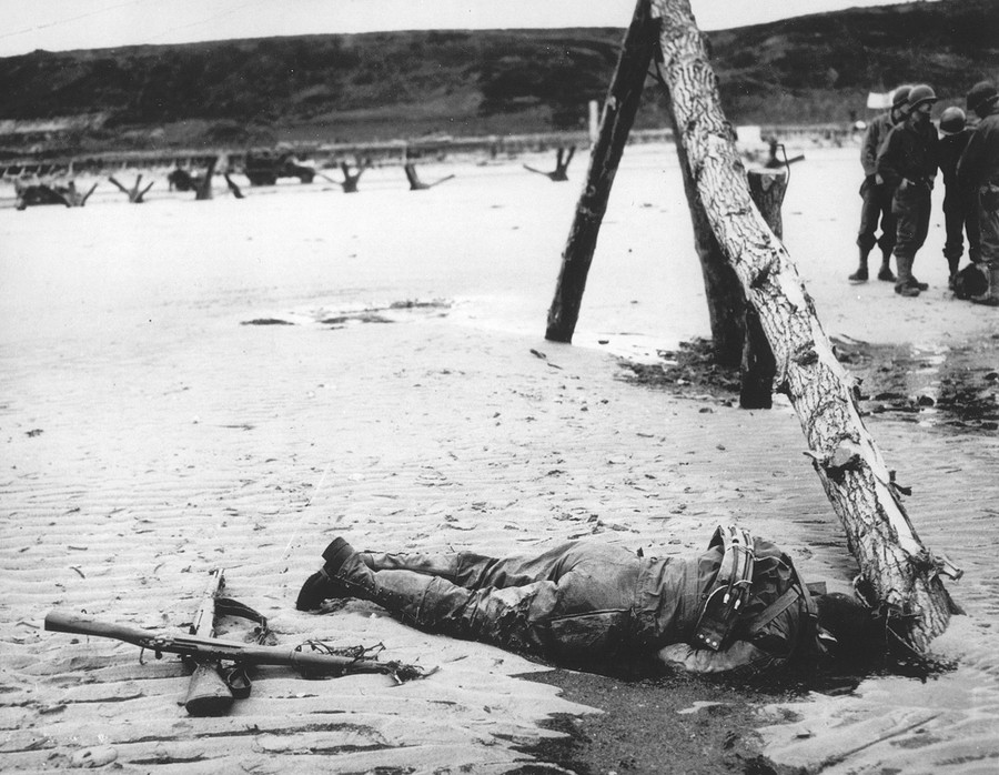Read moreAn American soldier, who died in combat during the Allied invasion, lies on the beach of the Normandy coast, in the early on days of June 1944. Two crossed rifles in the sand side by side to his body are a comrade's last reverence. The wooden structure on the correct, normally veiled by high tide h2o, was an obstruction erected by the Germans to prevent seaborne landings. #