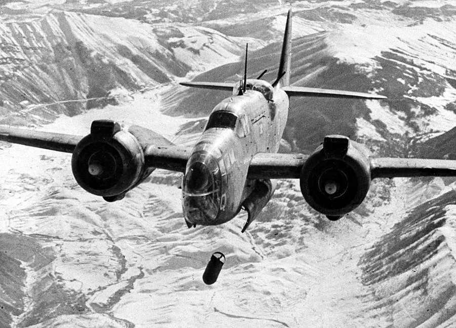 Read moreA Regal Air Force Baltimore light bomber drops a series of bombs during an set on on the railway station and junction at the snowfall-covered boondocks of Sulmona, a strategic betoken on the east-west route across Italy, in February of 1944. #