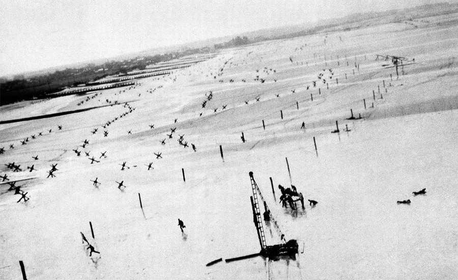 Read more thanA low-flying Allied plane sends German language soldiers running for shelter on a beach in French republic, before D-Day in 1944. The fliers were taking photos of German coastal barriers in preparation for the upcoming June 6 invasion. #