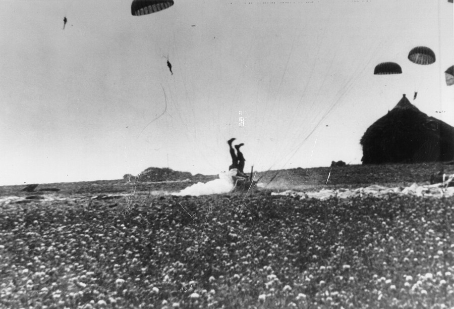 Read more thanThe haystack at right would have softened the landing for this paratrooper who took a tumble during operations in Holland past the 1st Allied Airborne Army on September 24, 1944. #